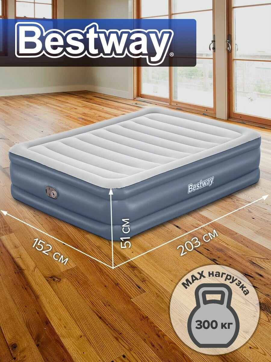 Best WAY Матрас надувной Tritech Queen со встроенным электронасосом 203x152x51см Bestway 6713I .