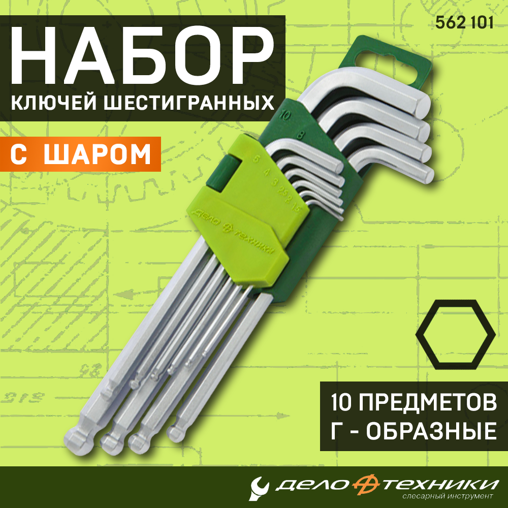Набор Ключей Шестигранных 10Шт. С Шаром (1.5, 2, 2.5, 3, 4, 5, 6, 7, 8, 10 Мм) Дело Техники арт. 562101