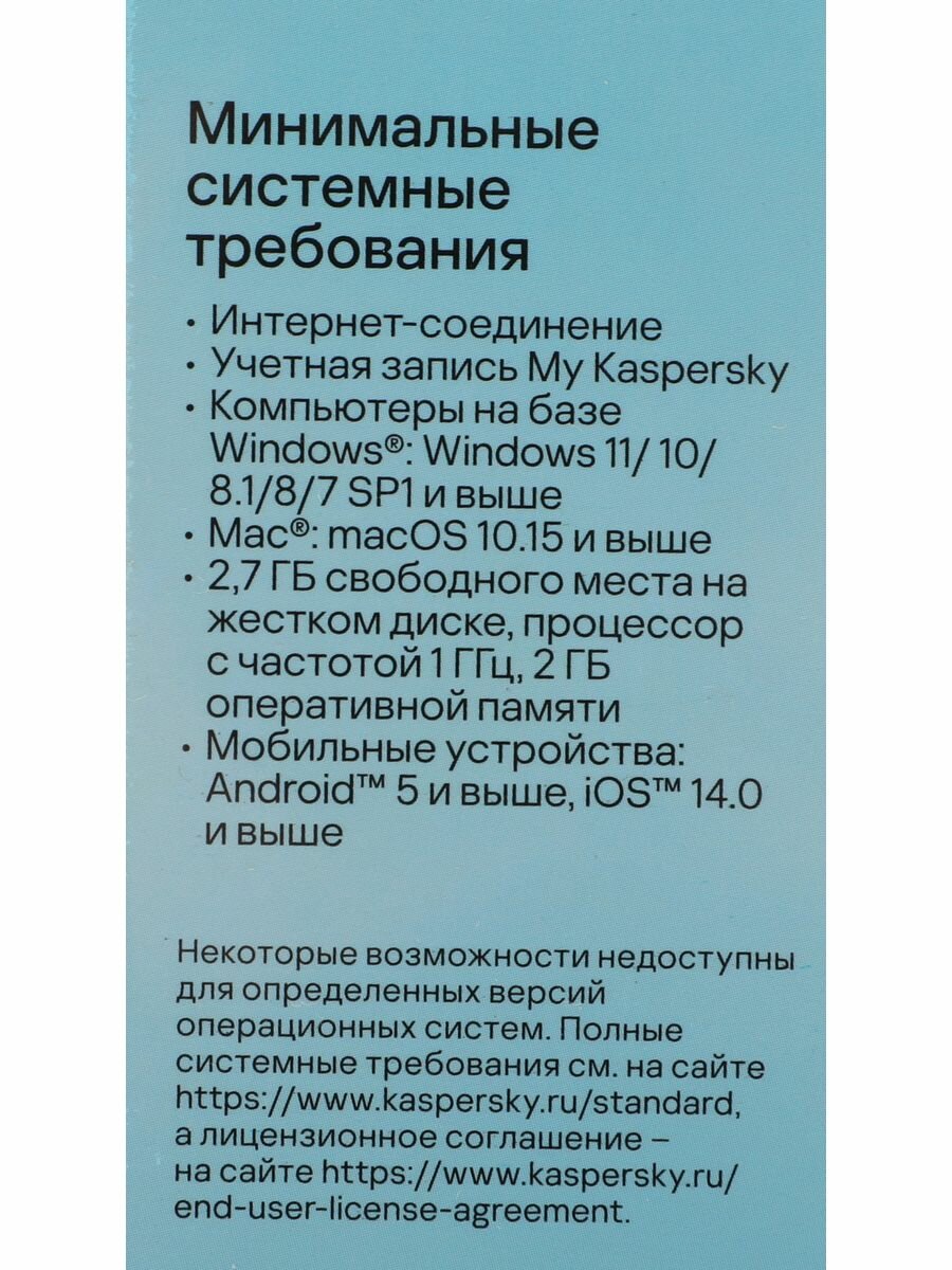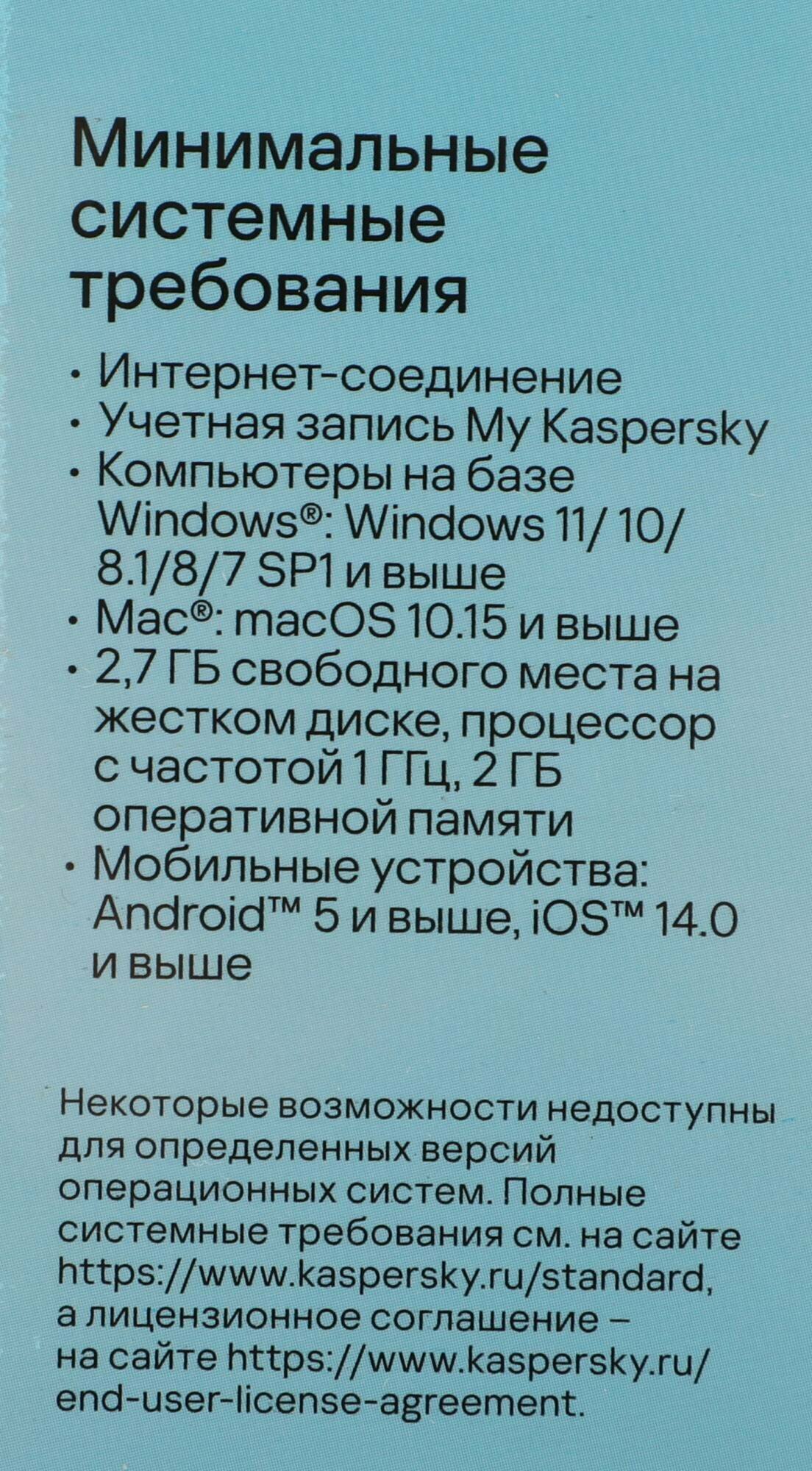 Антивирус Kaspersky Standard Russian Edition Лицензия (3 устройства, 1 год)