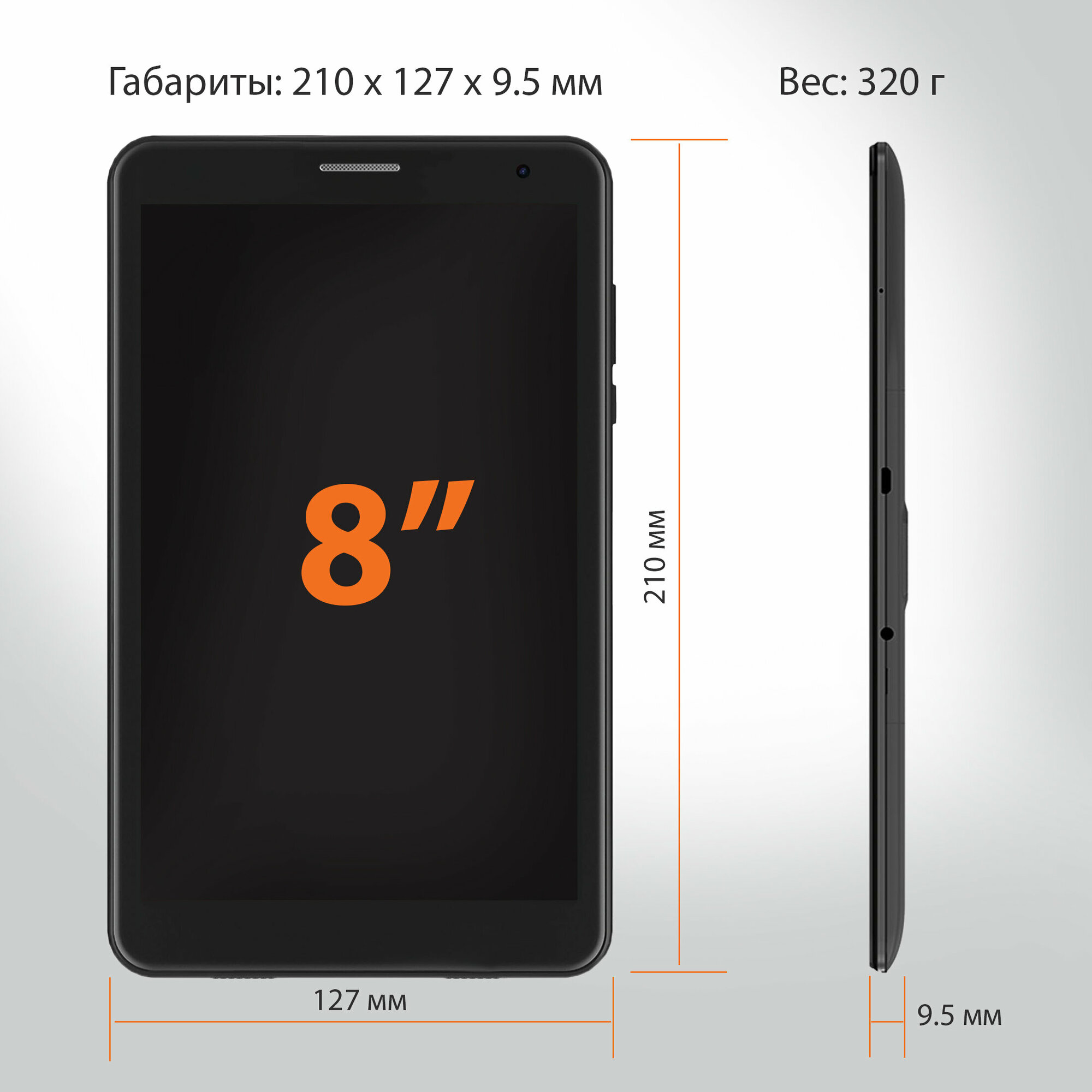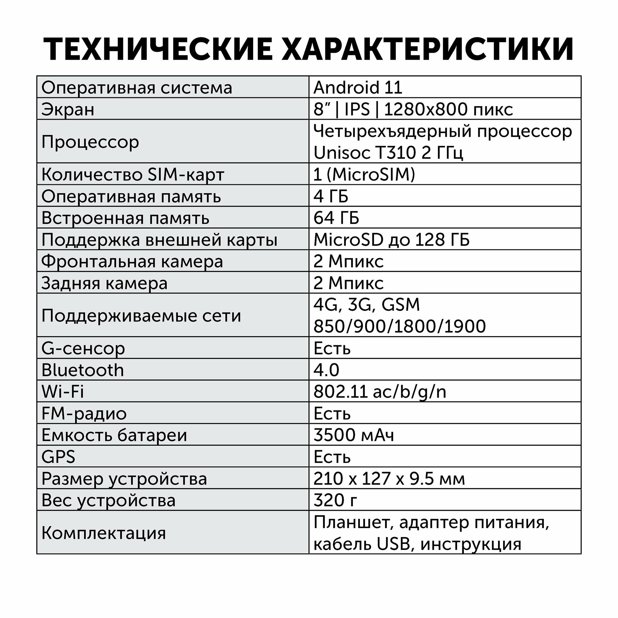 Планшетный компьютер SunWind Sky 8421D 4G T310 8C/4Gb/64Gb 8" IPS 1280x800/3G/4G/And11/черный/BT/GPS/2Mpix/2Mpix/