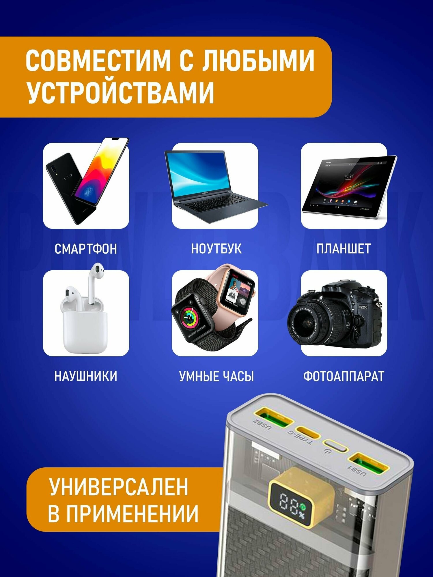 | Отзыв: | неплохая банка, заряжает быстро особенно если телефон поддерживает функцию быстрой зарядки |