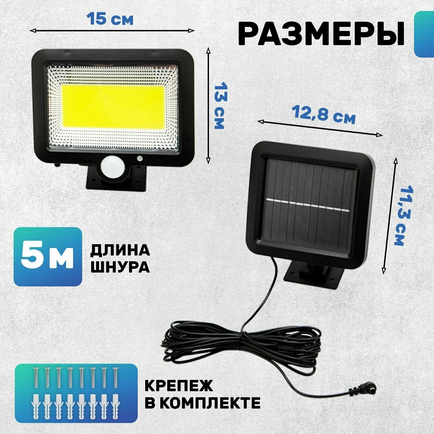 Прожектор садовый на солнечной батарее NEW AGE LED COB 15Вт 6500K LAMPER (IP65, 3 режима, выносная солнечная панель 5м, датчики движения и освещенност