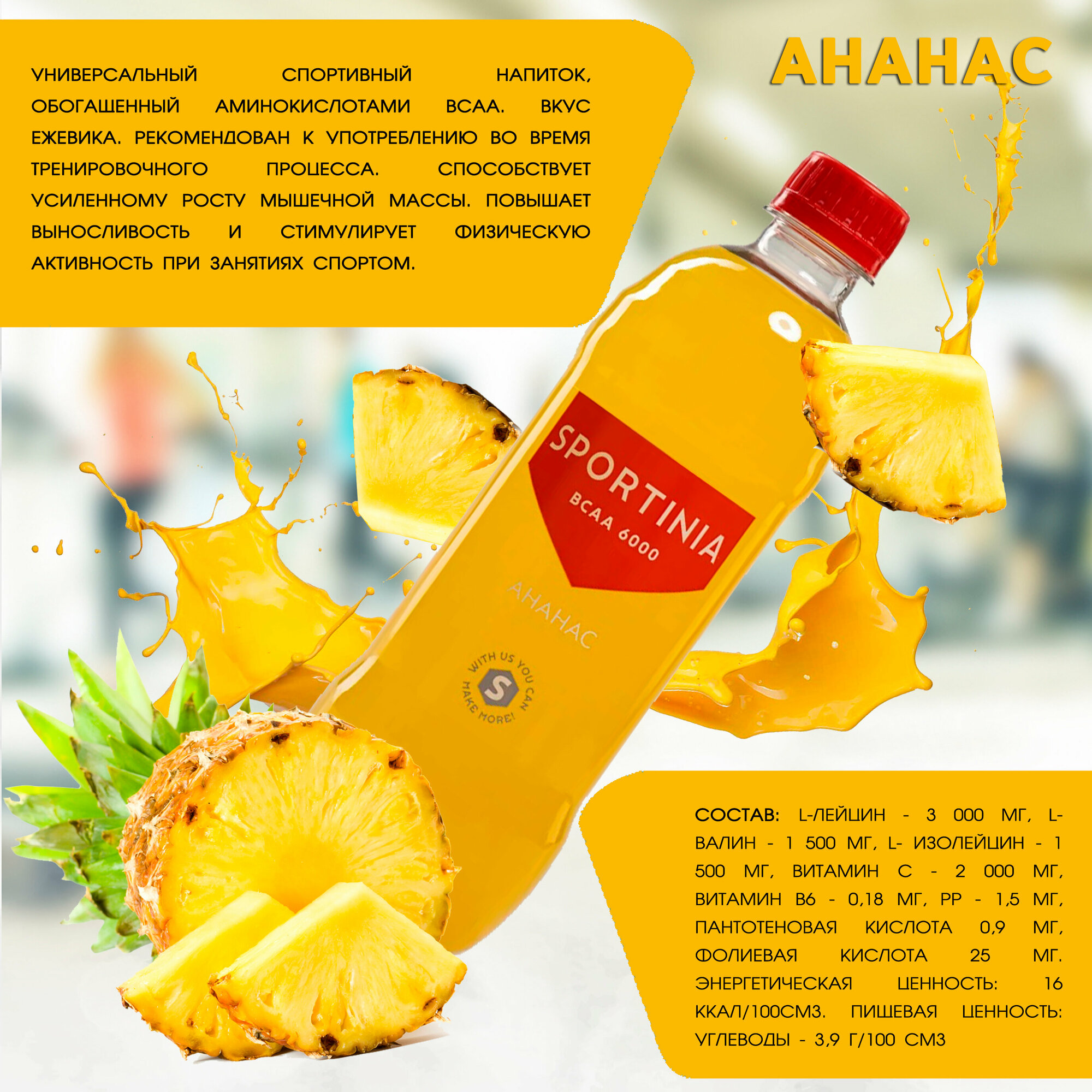 СохранитьВода БЦАА Напиток с аминокислотами Спортивное питание Sportinia BCAA 6000 Ананас, 12 шт. x 500 мл. интересное: