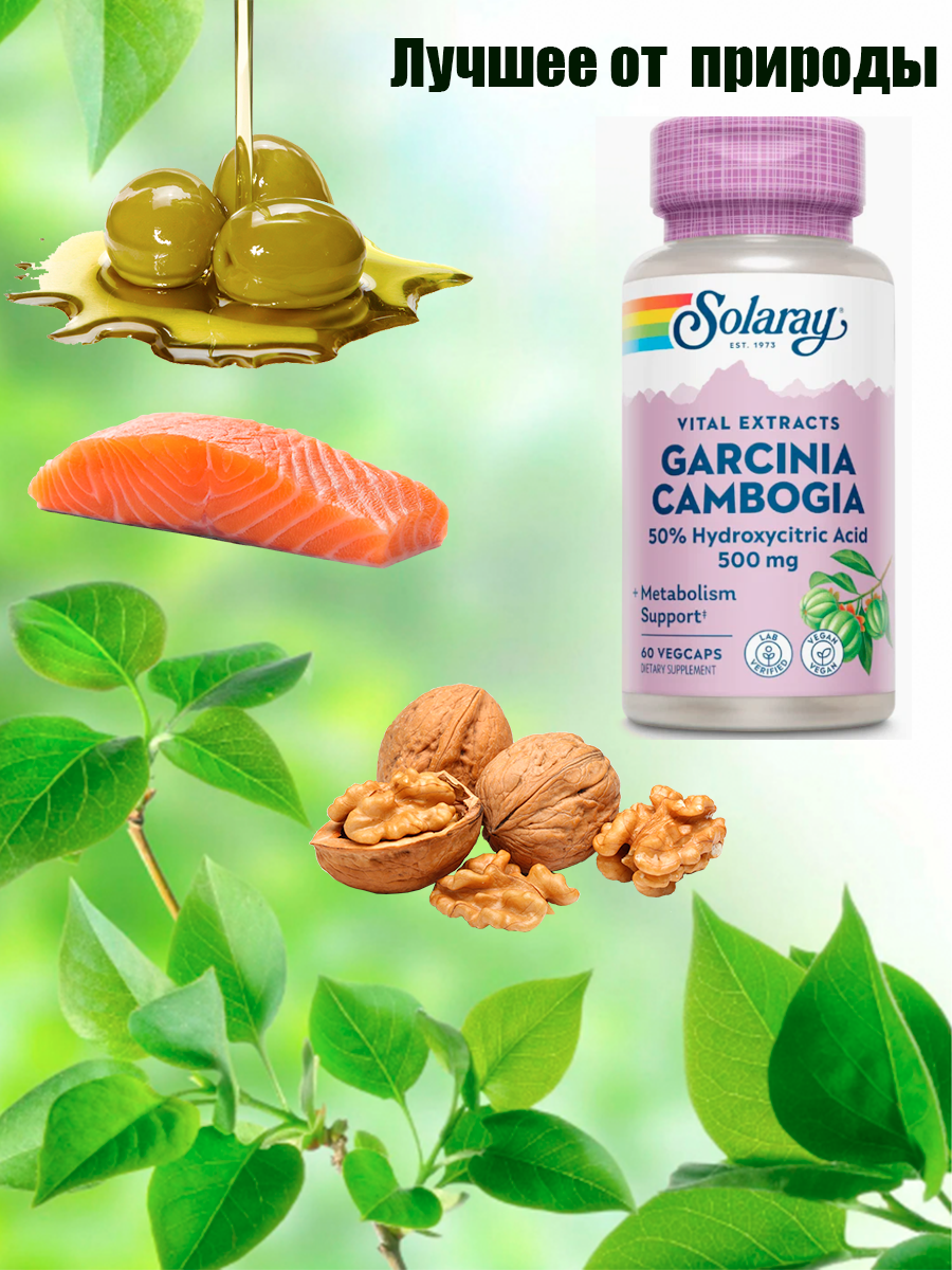 Гарциния камбоджийская 500мг Solaray, 60 капсул, для печени, похудения, обмена веществ