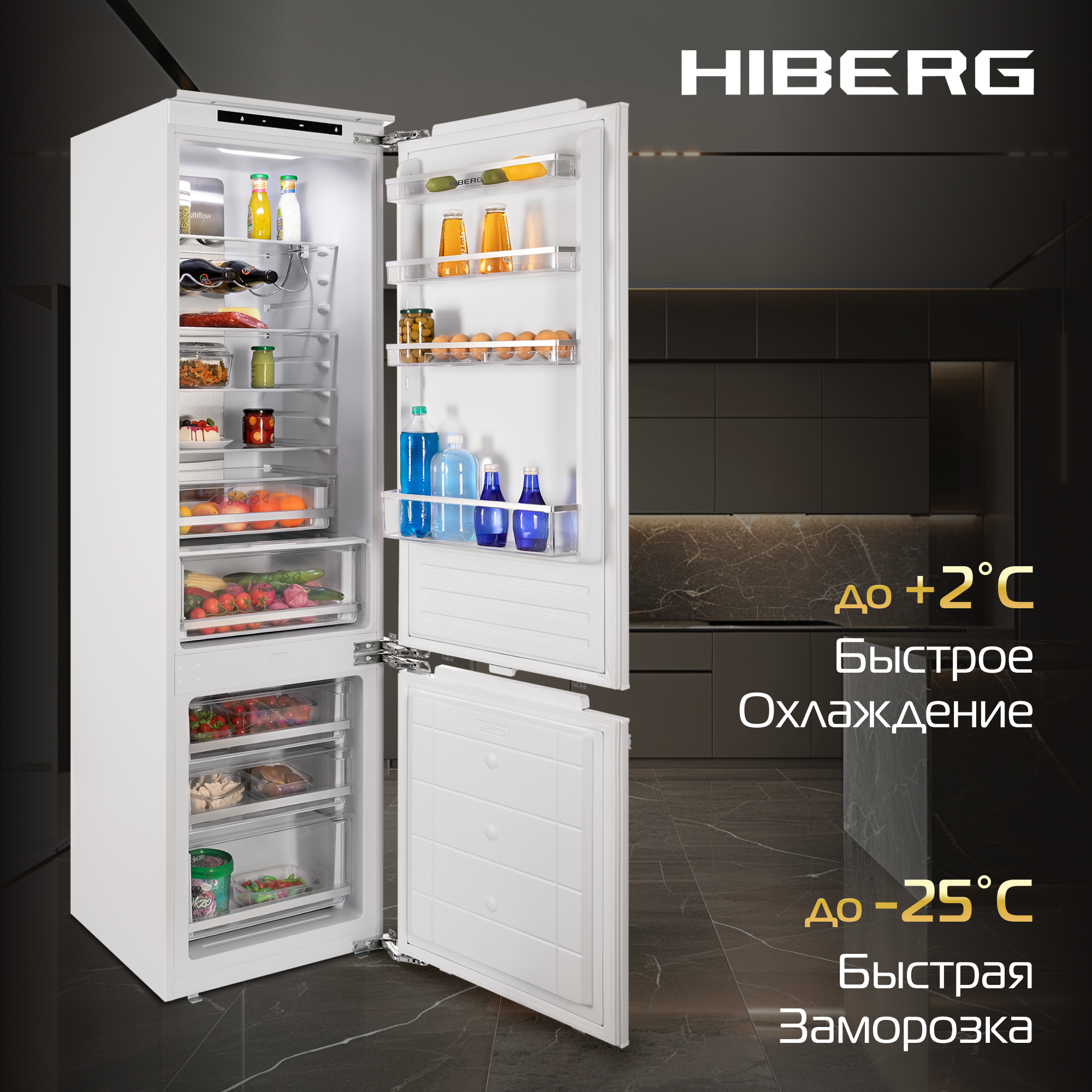 Встраиваемый двухкамерный холодильник Hiberg i-RFCB 455F NFW интересное: