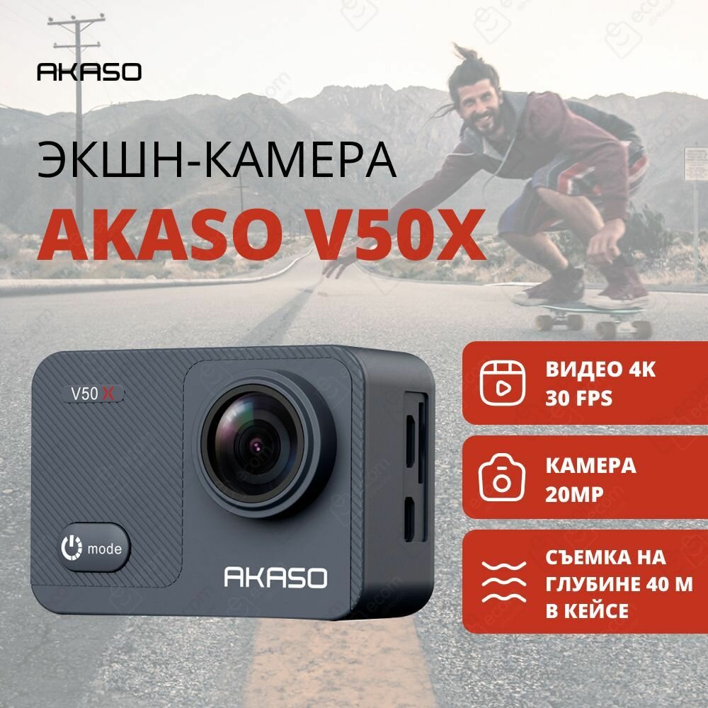 Ниже Вы можете прочитать отзывы на Экшн-камера AKASO V50 X Цвет: черный., ознакомится с подробными характеристиками, посмотреть интересные обзоры и фотографии на Экшн-камера AKASO V50 X Цвет: черный..