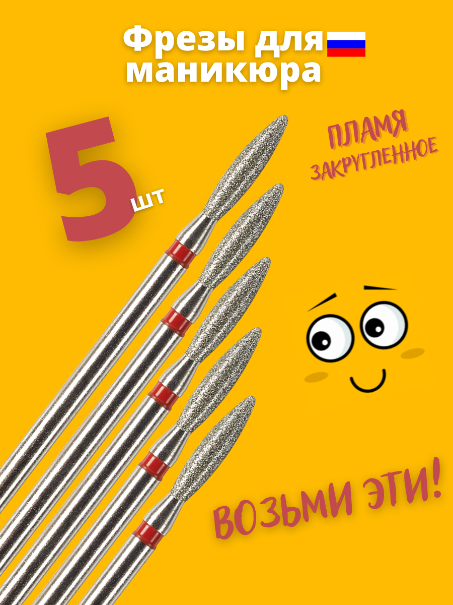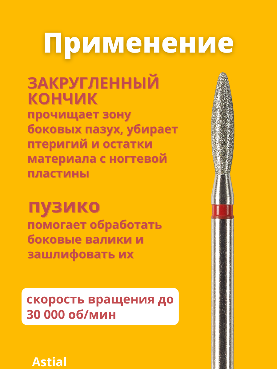 Фреза "Пламя тупое" Astial для маникюра/педикюра алмазная с закруглённым кончиком, набор из 5 штук интересное: