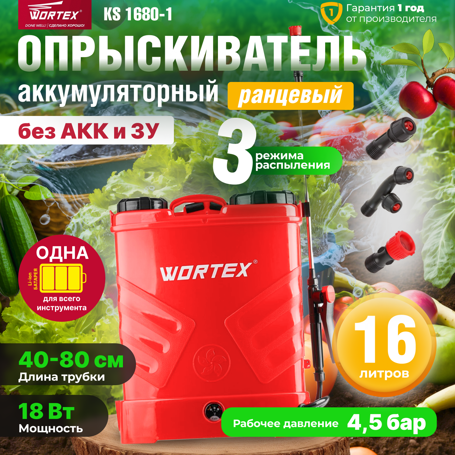 Аккум. опрыскиватель WORTEX KS 1680-1 Li в кор. ALL1 SOLO 18В, 16 л (16 л., 4.5 бар, 18 В, без АКБ И ЗУ, Li-Ion) (0325259) интересное: