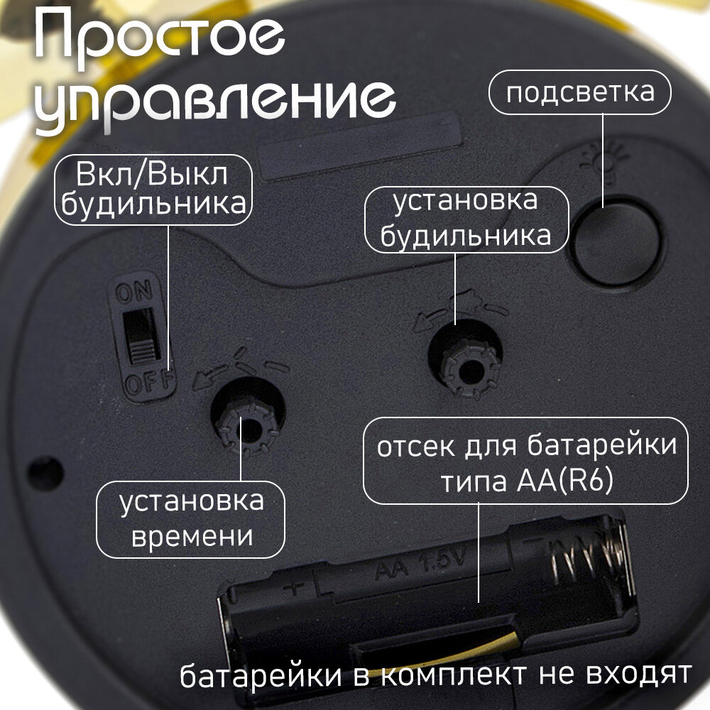 Купить Часы будильник настольные классические D-10 см золотой цвет Эврика детские, взрослые, подарочные мужские на 23 февраля, женщине на 8 марта, ребенку, на стол, в спальню
