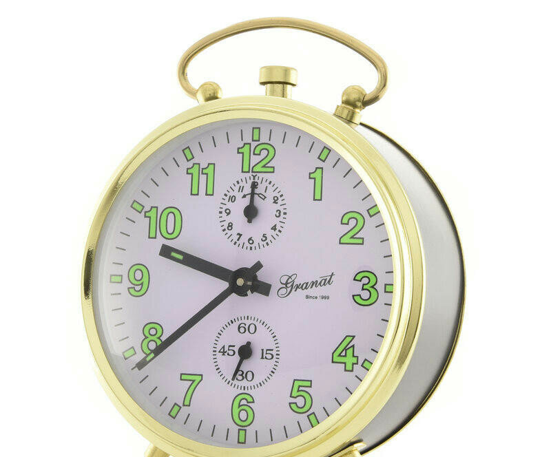 Будильник механический громкий с кнопкой отключения гранат М 206-12 цвет серый с золотой отделкой, высота 10 см