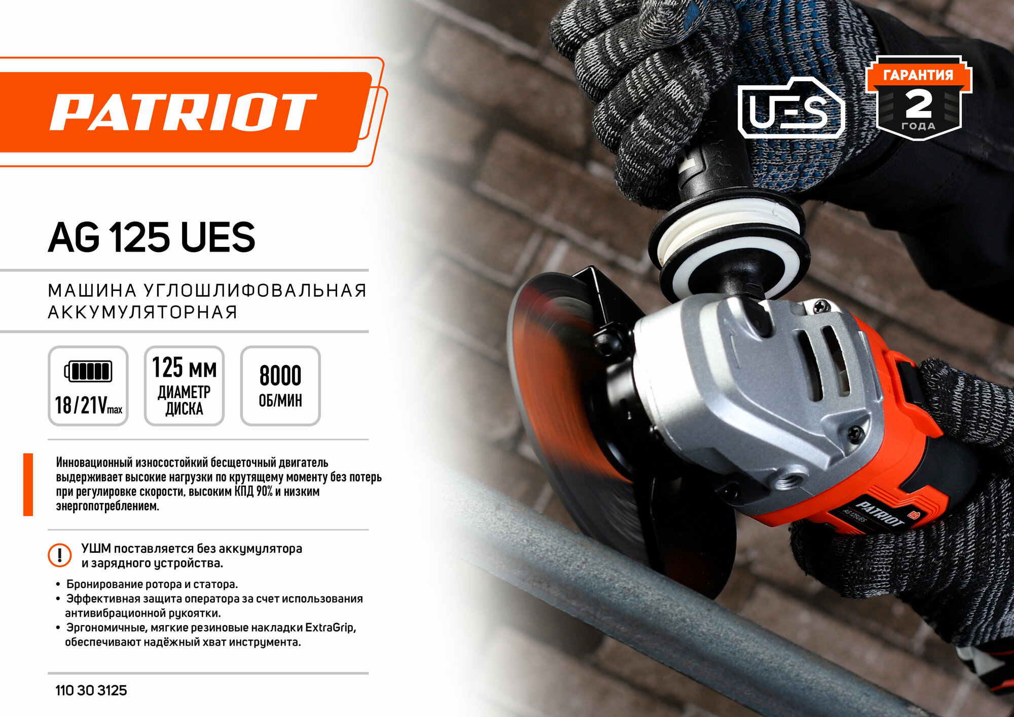 Аккумуляторная УШМ PATRIOT AG 125UES (110303125), 125 мм, без аккумулятора