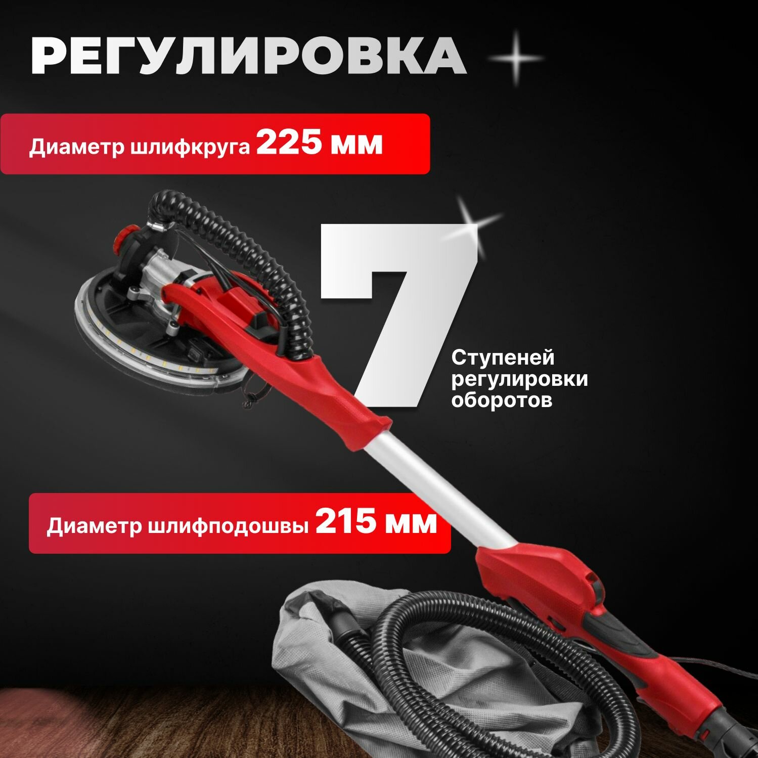 Шлифмашина для стен и потолков, жираф FANG TOOLS 225мм с подсветкой и встроенным пылесосом + 5 шлифовальных кругов