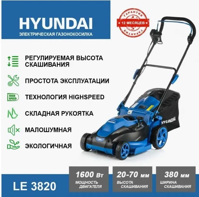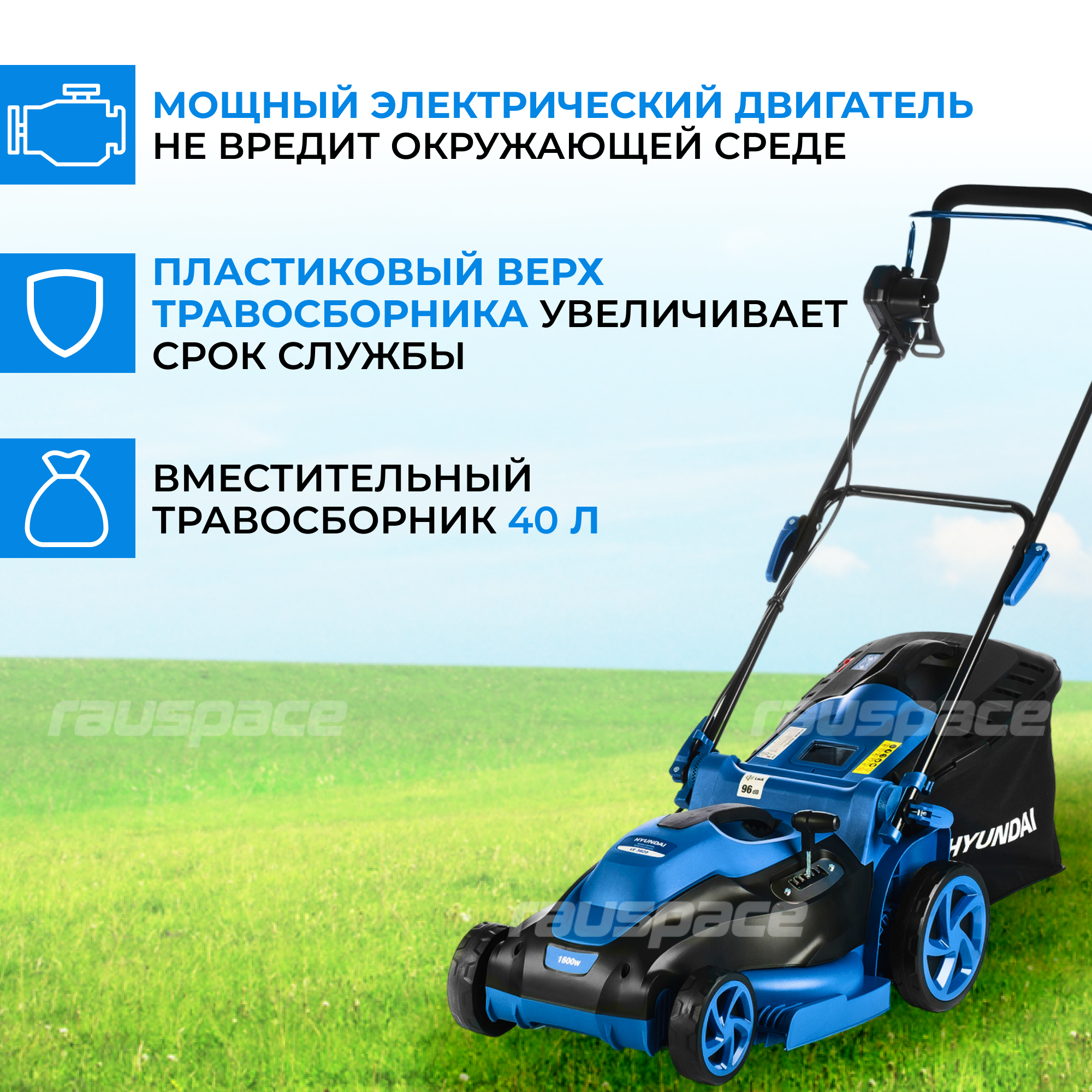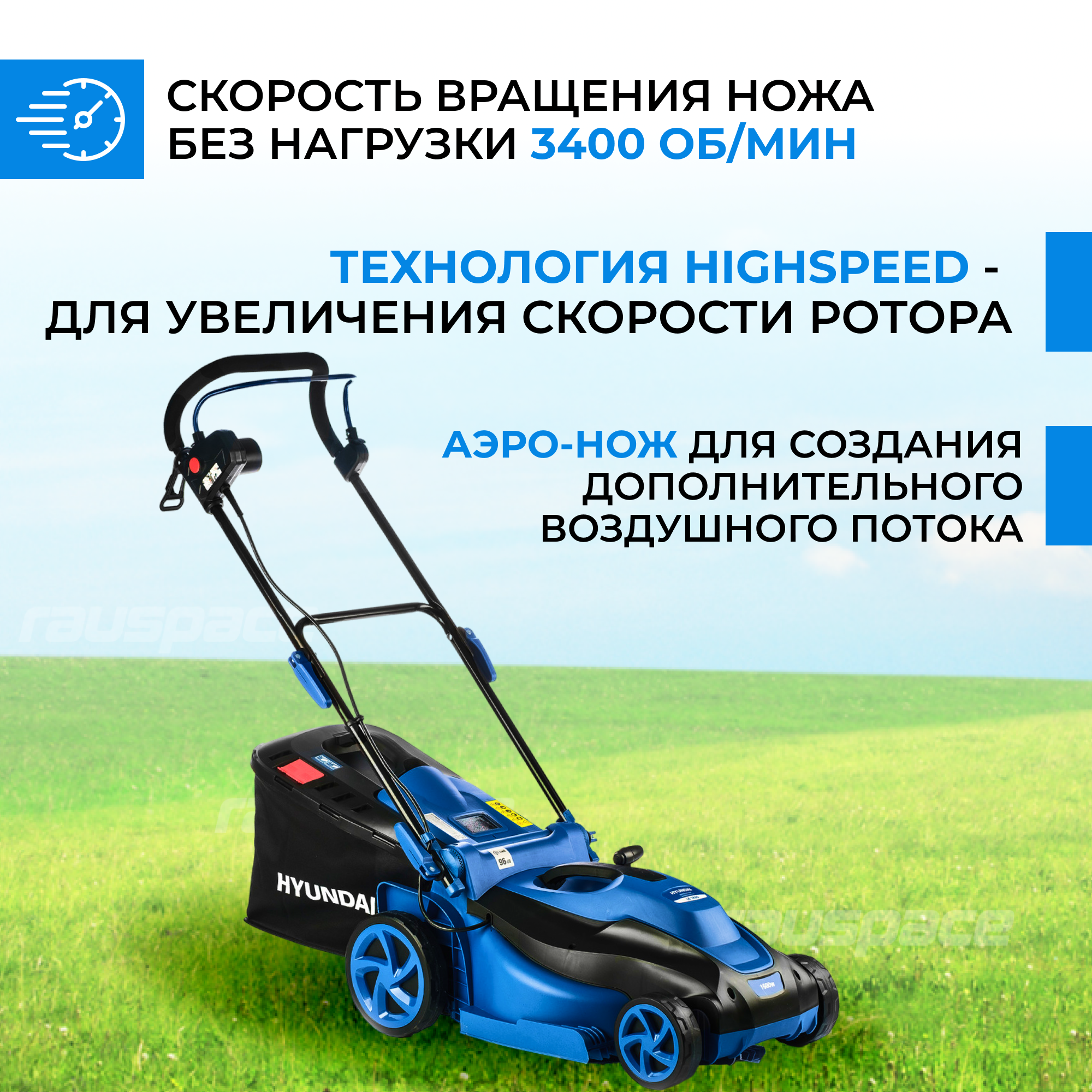 Электрическая газонокосилка Hyundai LE 3820, 1600 Вт, 38 см интересное: