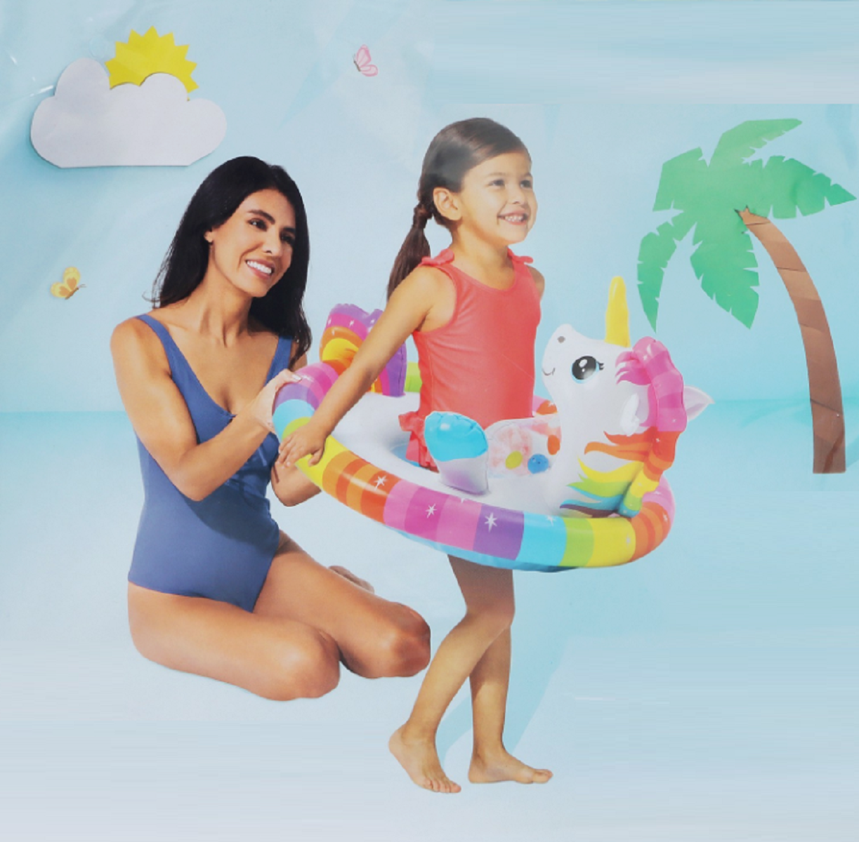 Круг надувной для малышей с трусами See-Me Sit Pool RidersЗверята-обнимашки Единорог, 77х58см - Intex