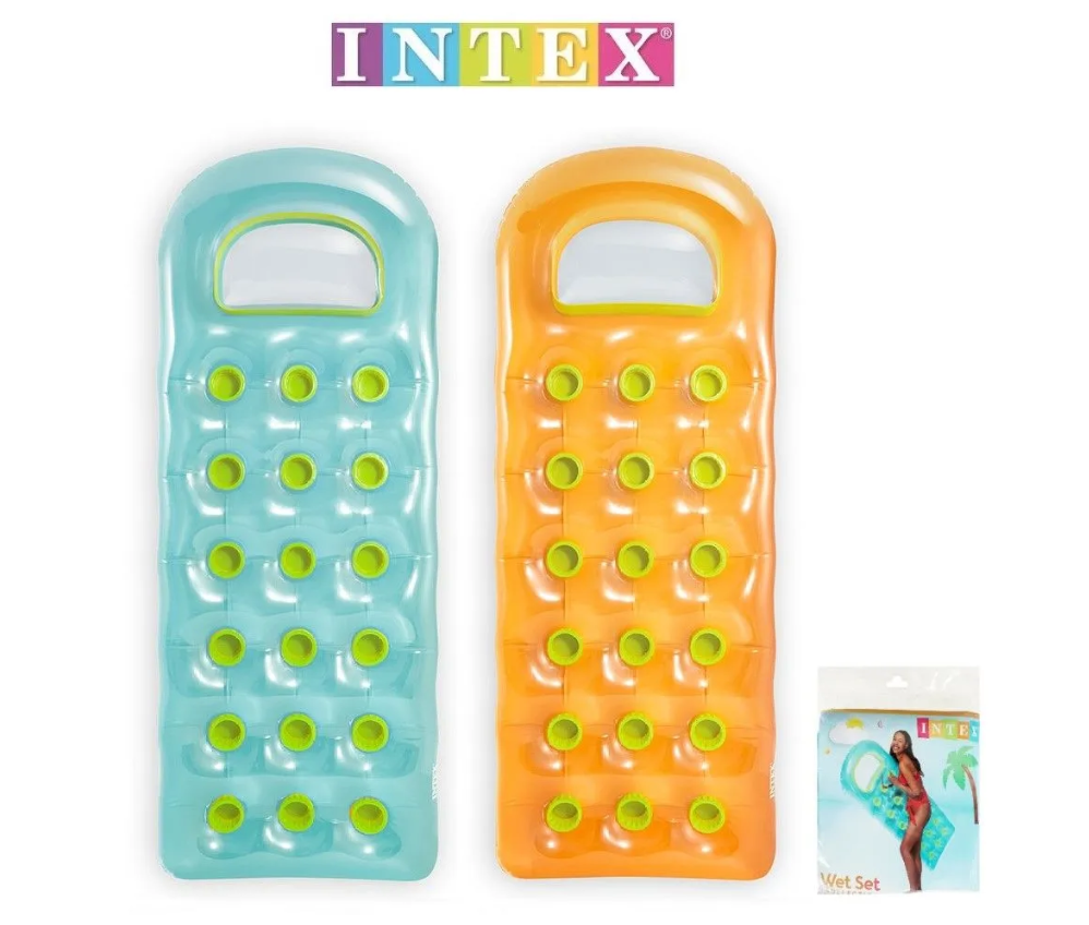 Матрас надувной пляжный 188х71см с подстаканниками, Intex, 59895 зеленый