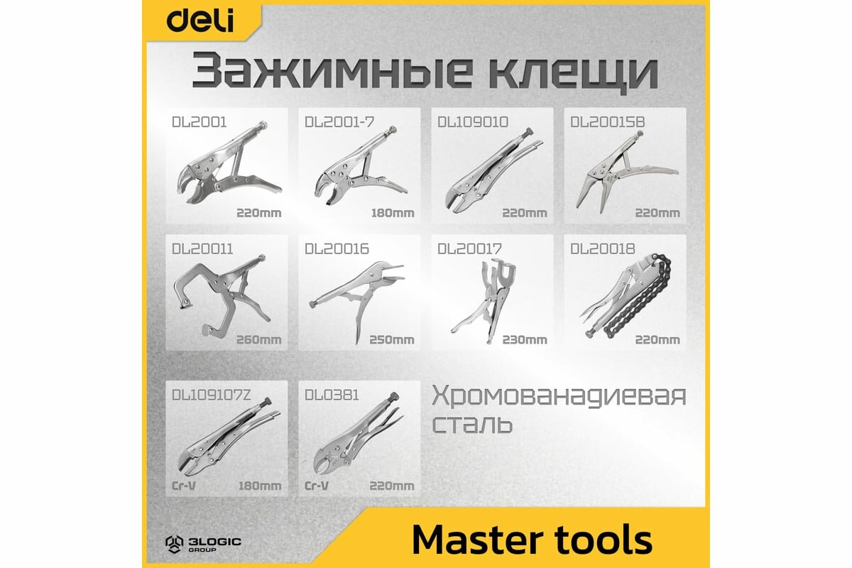 Зажимные клещи для сварки DELI dl20017 с фиксатором, 230мм, регулировочный винт,углеродистая сталь 112004