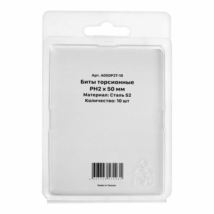 Биты профессиональные C050P2T-10, Japan S2, Torsion, PH2 x 50 мм, PP-box, 10 шт.
