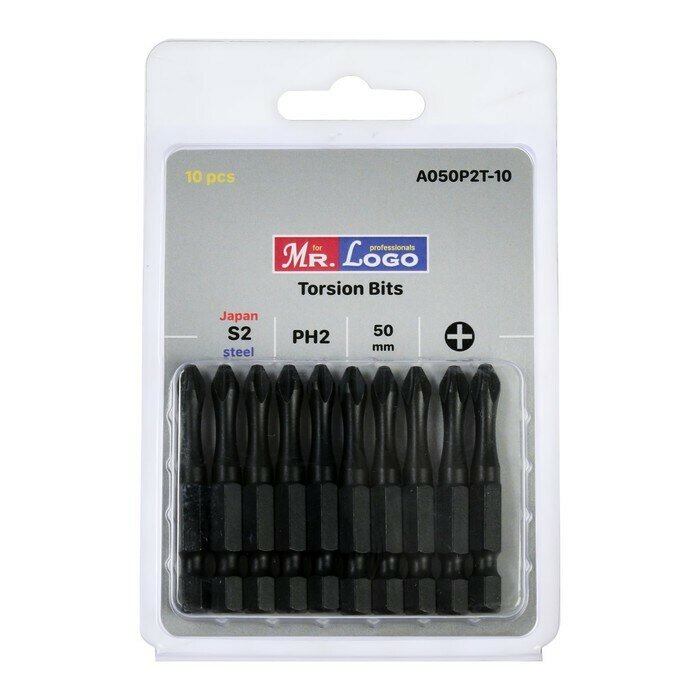 Биты профессиональные MR.LOGO C050P2T-10, Japan S2, Torsion, PH2 х 50 мм, PP-boх, 10 шт. интересное: