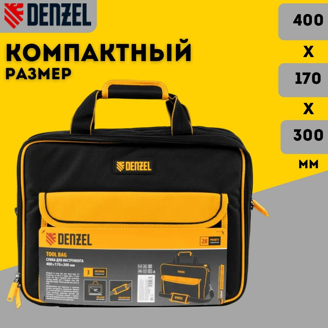 Сумка для инструмента Denzel 400x170x300 мм, 3 отделения, 28 карманов, наплечный ремень 90295