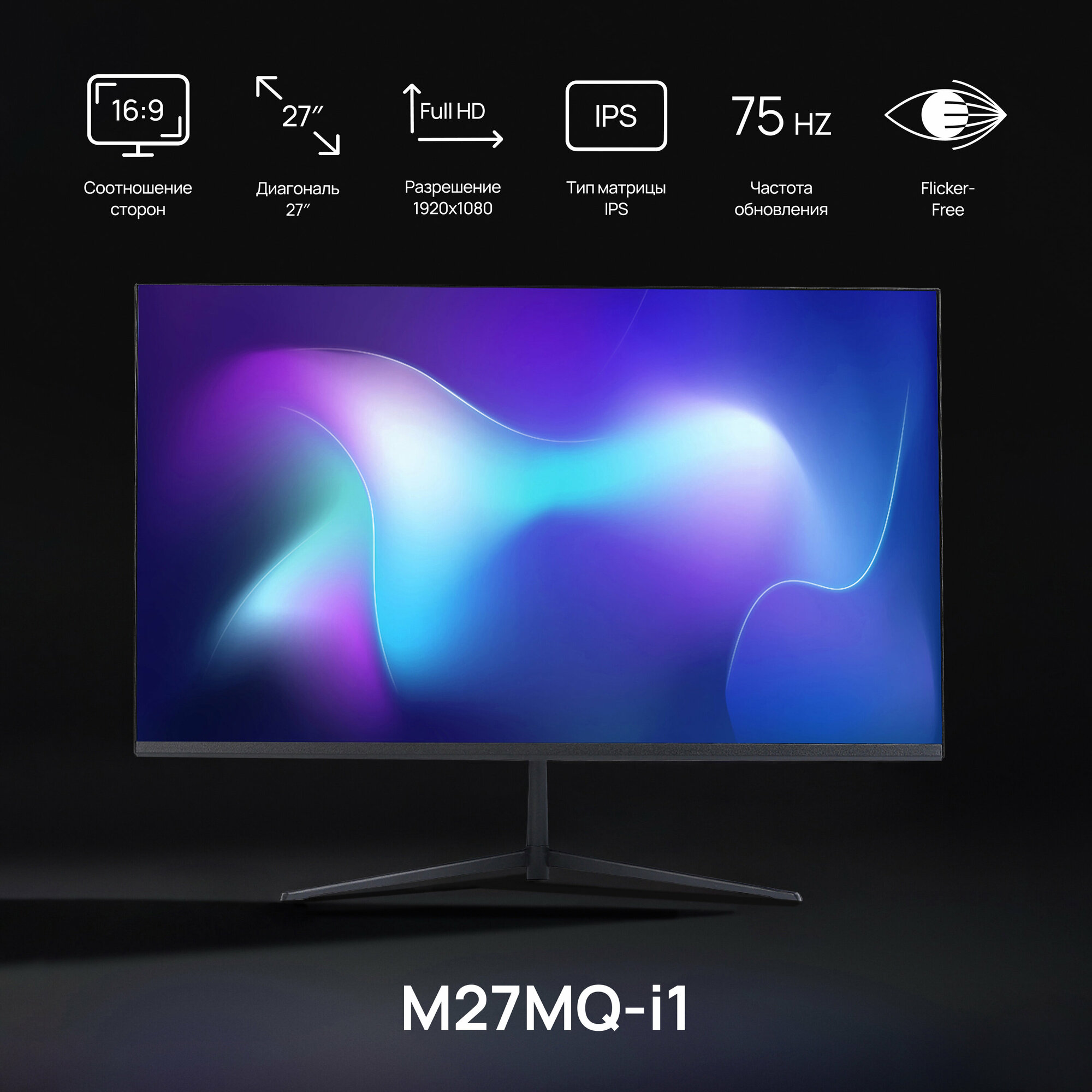 27" Монитор M27MQ-i1 Full HD 1920X1080; IPS; 75 Ghz; HDMI; VGA, черный