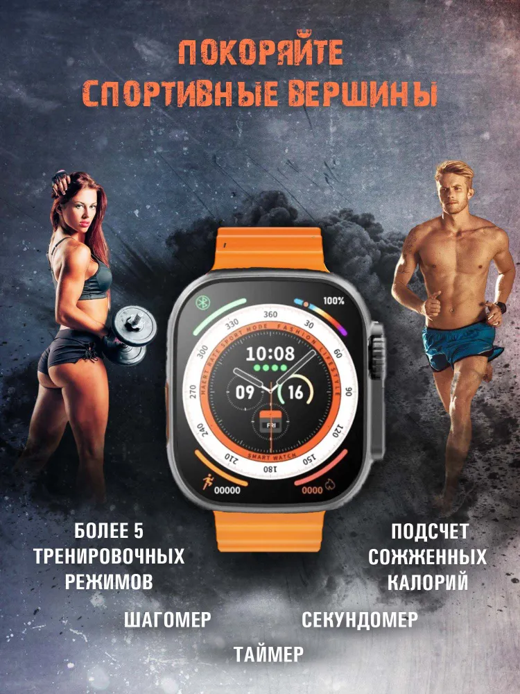 Купить Умные часы Smart X8 Ultra Series 8 (цвет Серебро)температура тела, Bluetooth, звонок, калькулятор, беспроводная зарядка.