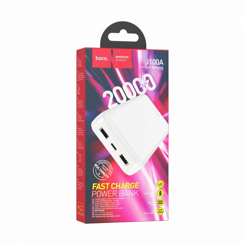 Внешний аккумулятор HOCO J100A, 20000 mAh, LED индикатор, Белый