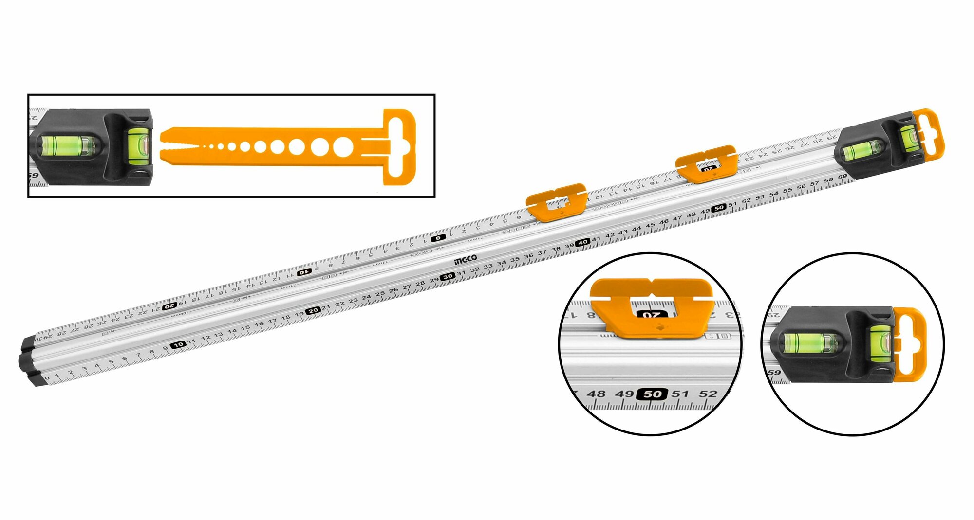 Линейка многофункциональная с уровнем INGCO 600 мм интересное: