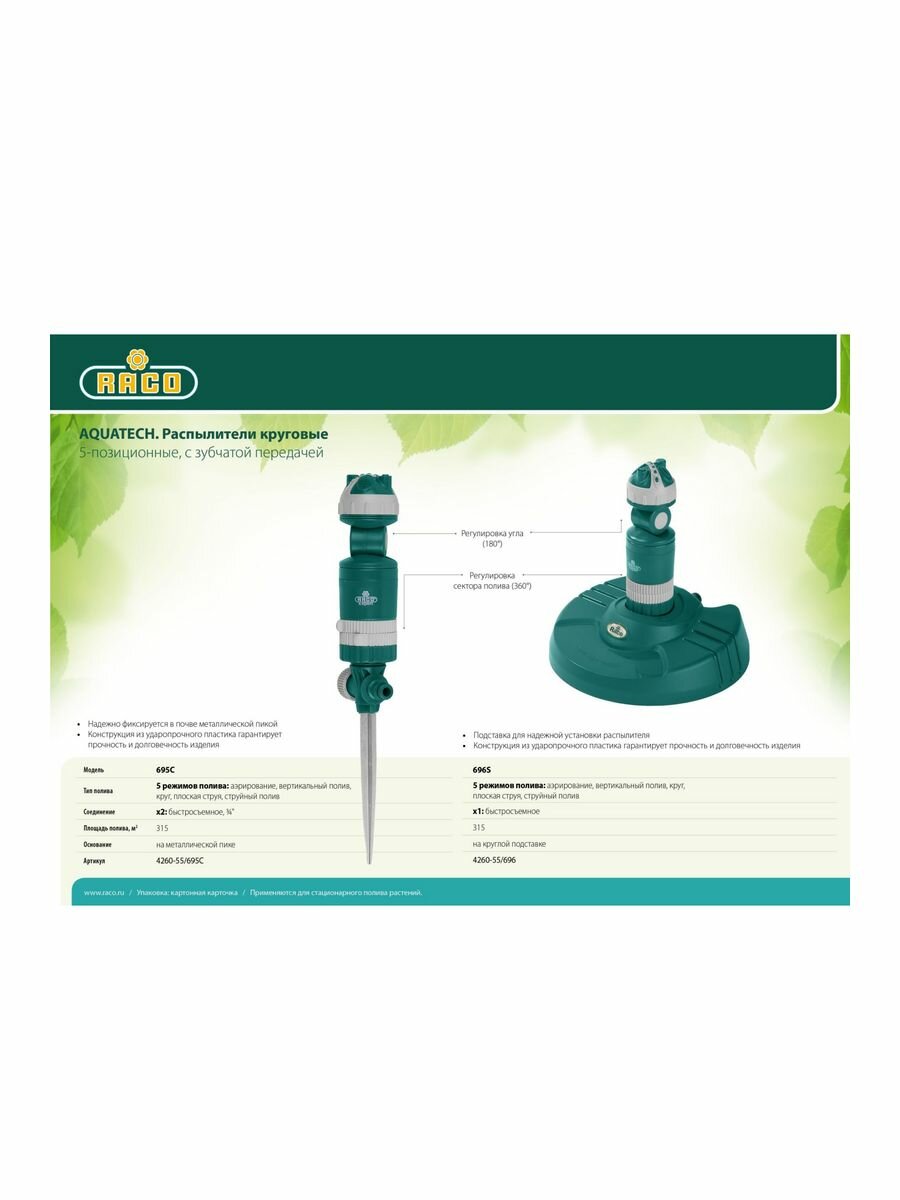 RACO AQUATECH 695C 315 м2 полив, на металлической пике, распылитель круговой, 5-позиционный