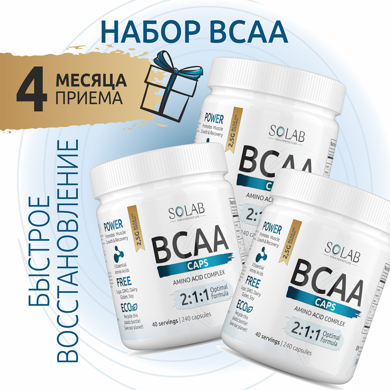 BCAA 2:1:1 Аминокислоты комплекс SOLAB, бцаа спортпит 240 капсул, 3 шт в упаковке интересное: