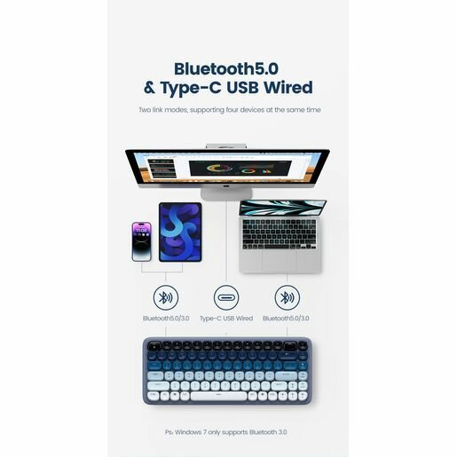 Клавиатура Ugreen KU101 FUN+ Mechanical Keyboard blue механическая usb-c/bluetooth