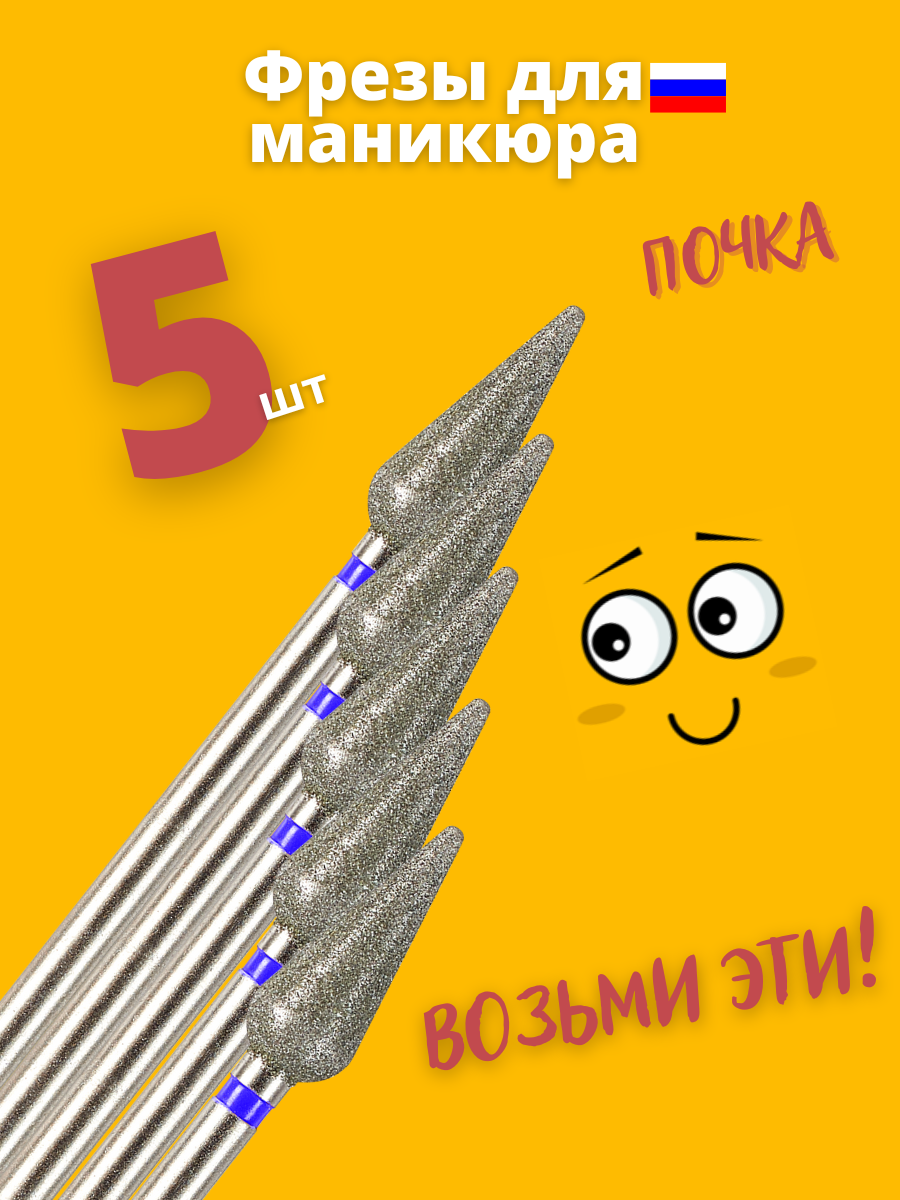 Astial / Фреза для маникюра и педикюра алмазная средняя синяя Почка Конус Капля Морковка Набор для кутикулы 5 шт