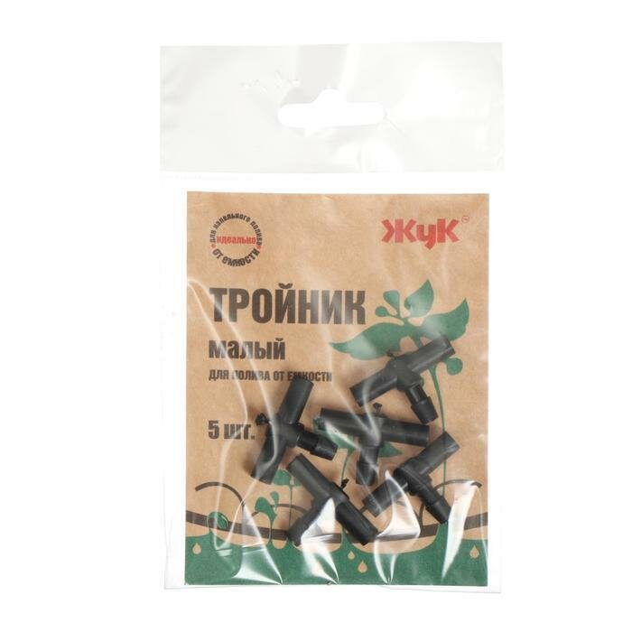 Набор Т-образных соединителей для капельного полива от ёмкости, 1/2" (12 мм), 5 шт., «Жук»
