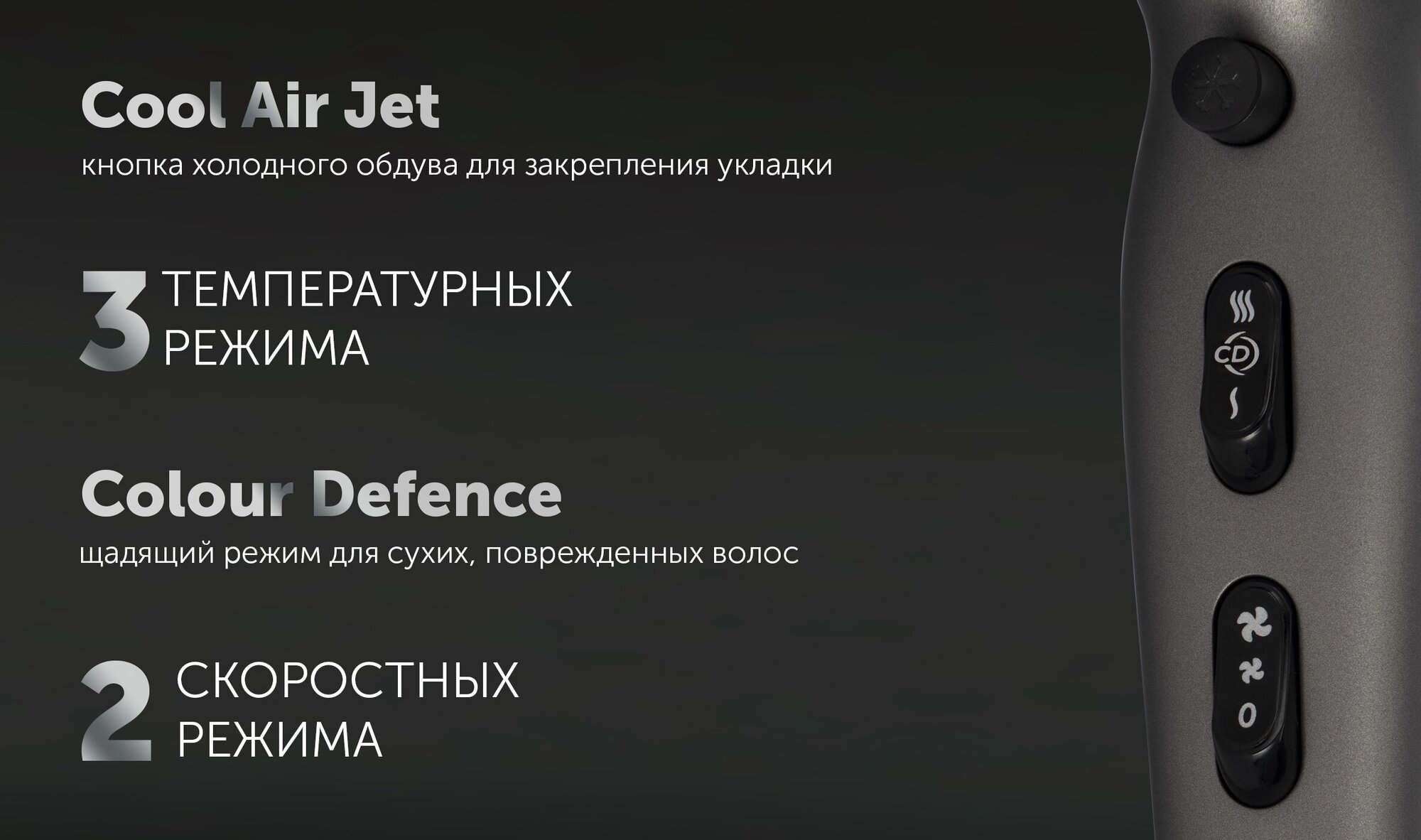 Режим есть для окрашенных волос, воздух теплый не обжигает ; |