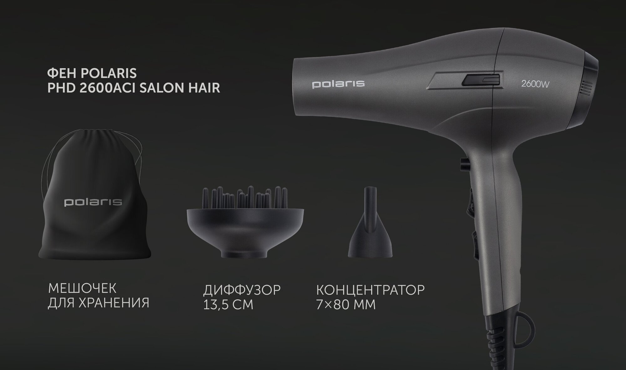 Фен Polaris PHD 2600ACi Salon Hair / Серый графит