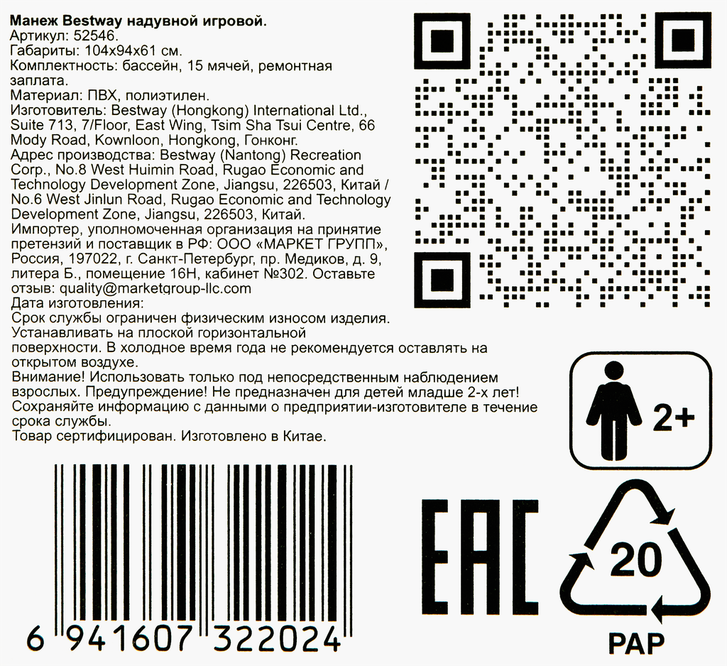 Ниже Вы можете прочитать отзывы на Bestway Манеж надувной, 104 х 94 х 61 см, с мячами, от 2 лет, 52546, ознакомится с подробными характеристиками, посмотреть интересные обзоры и фотографии на Bestway Манеж надувной, 104 х 94 х 61 см, с мячами, от 2 лет, 52546.