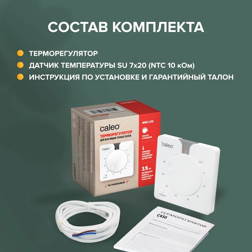 Теплый пол электрический кабельный Caleo Easymat 180 Вт/м2, 3 м2 в комплекте с терморегулятором SM930 встраиваемым, программируемым, 3,5 кВт