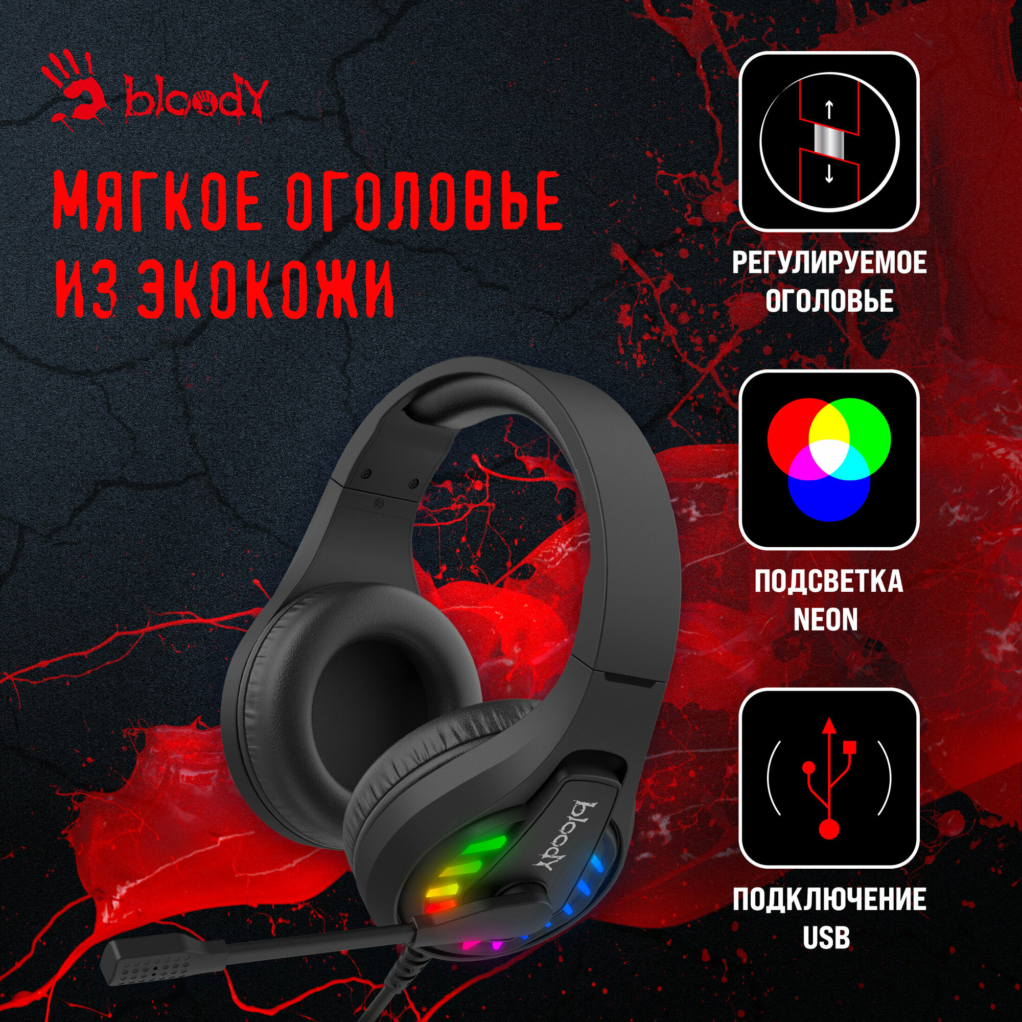 Наушники с микрофоном A4Tech Bloody G230 черный 2м накладные USB оголовье (G230)