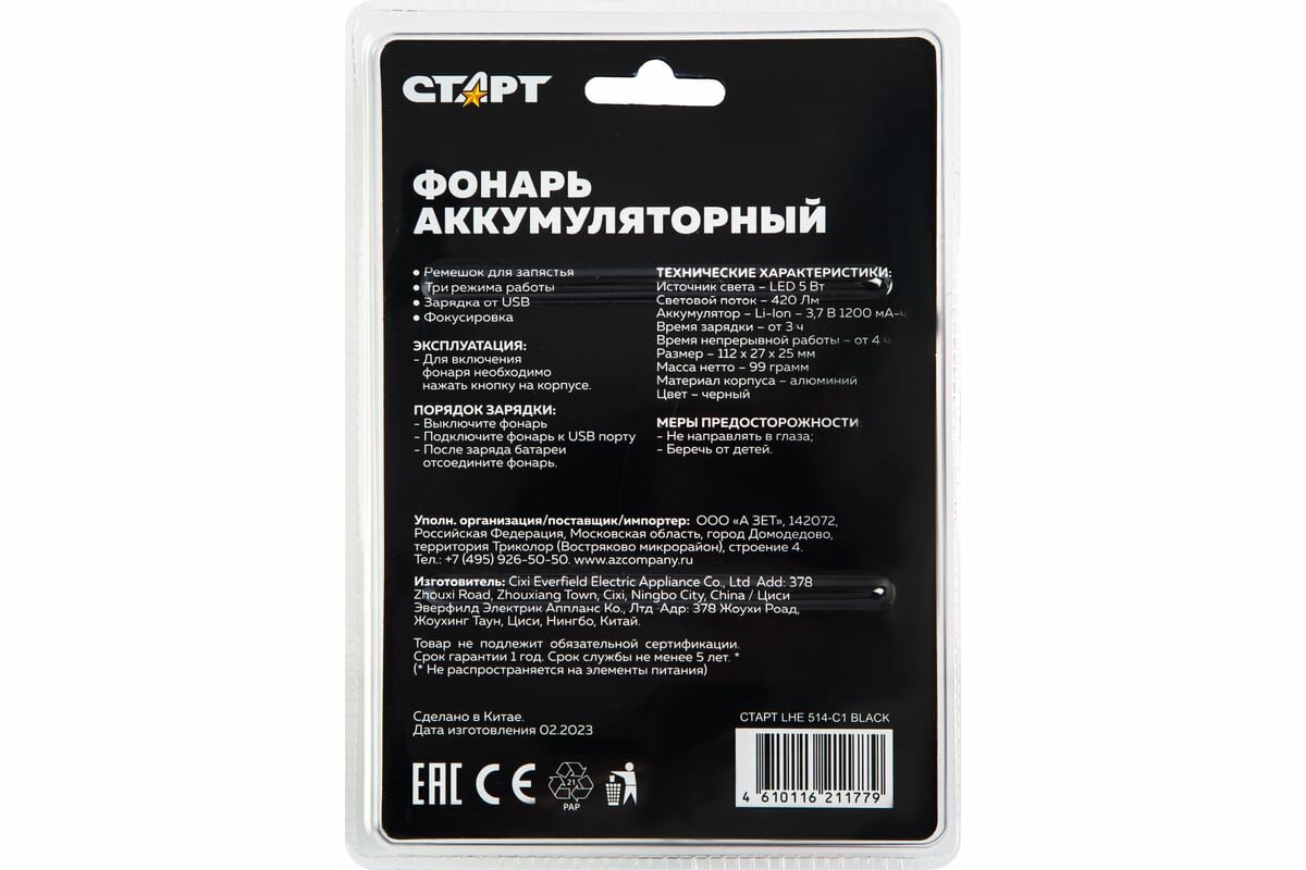 Фонарь светодиодный аккумуляторный Старт LHE 514-C1 Black 30/120 8873008 . интересное: