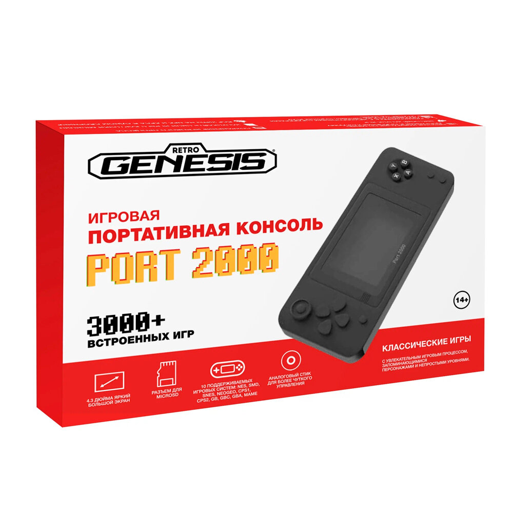 Портативная игровая приставка Retro Genesis Port 2000 (BL-862, 3,5 дюйма экран, 10 эмуляторов, черная, 3000+ игр, сохранения)