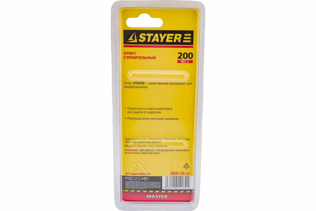 STAYER 5 м, 200 г, Строительный отвес со шнуром, MASTER (0635-20)