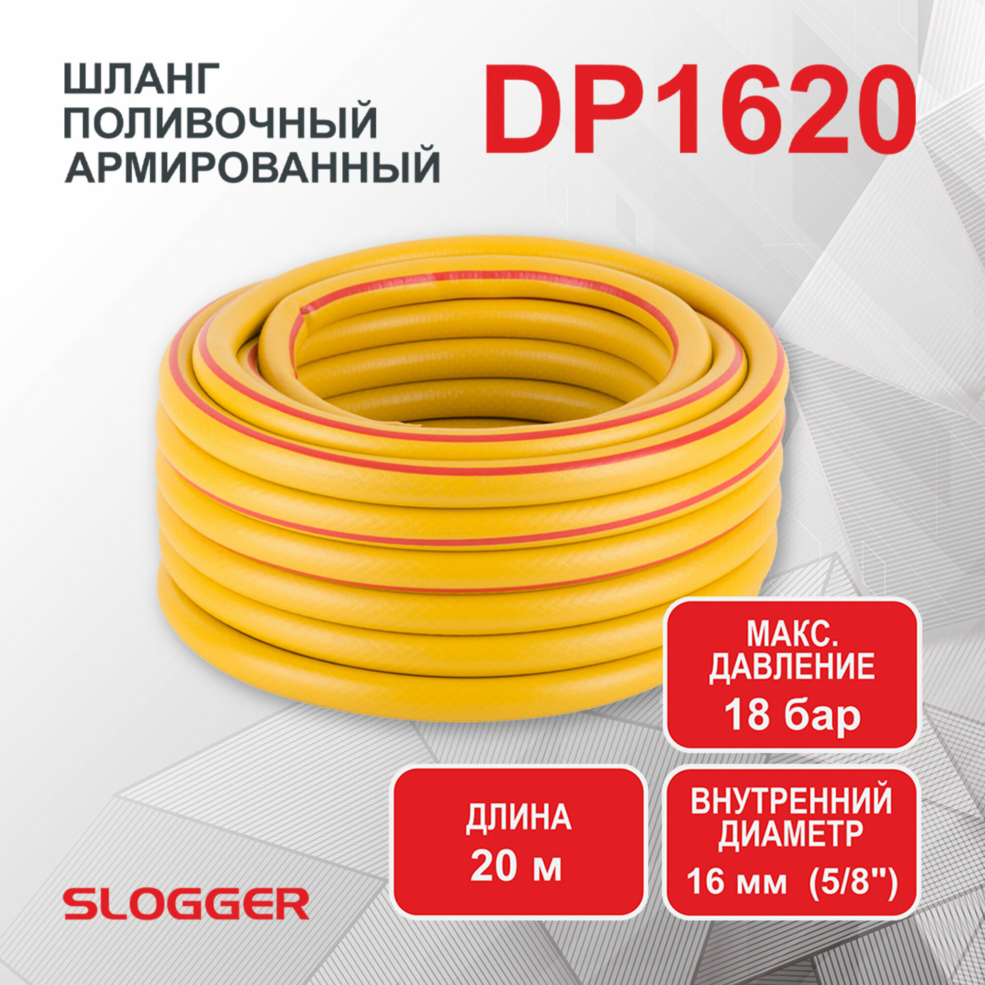 Шланг садовый SLOGGER DP1620 20 метров 5/8" трехслойный армированный