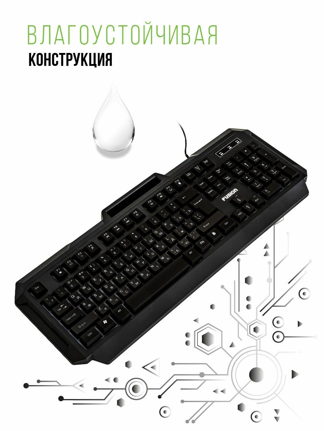 Клавиатура игровая FUSION мембранная для ПК, проводная с подсветкой и подставкой под телефон, функция Anti-ghost, подключение к SMART TV и XBOX