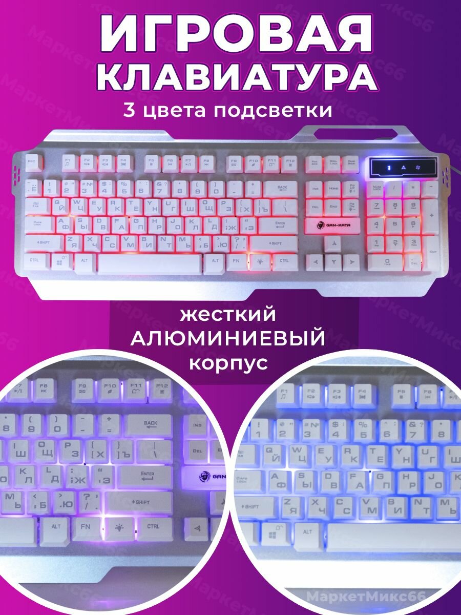 Игровая клавиатура Dialog Gan-Kata Kgk-25u Silver, 3 цвета подсветки, корпус металл, Usb, серебро .