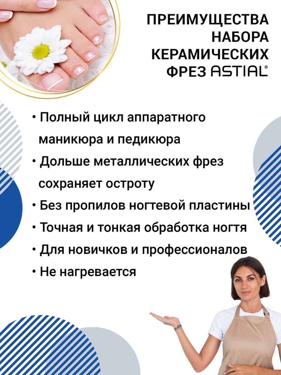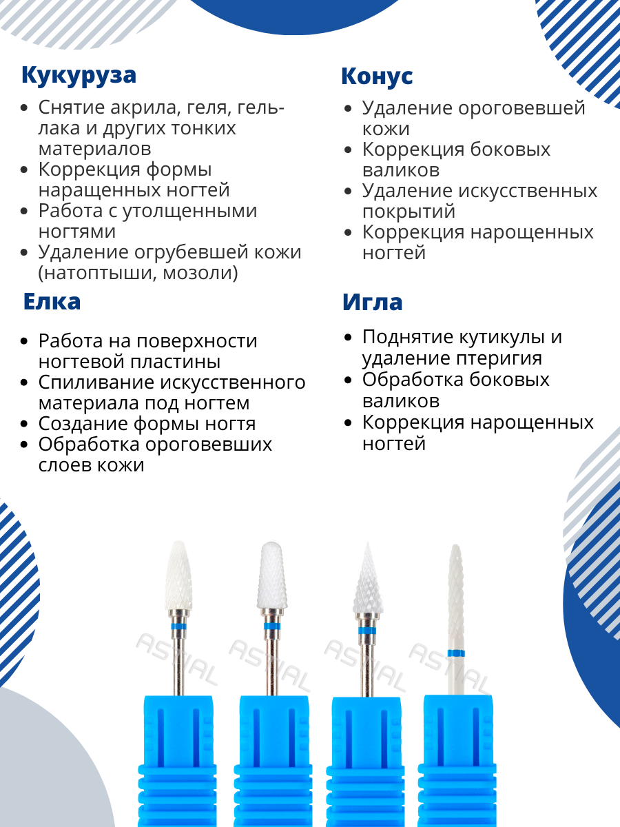 Набор керамических фрез Astial для маникюра и педикюра, снятия ногтей интересное: