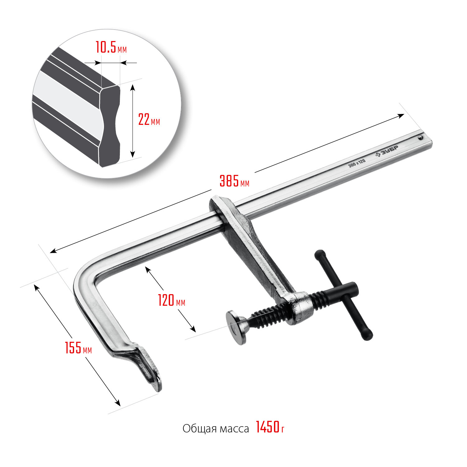ЗУБР КС-300/120, F, 300 х 120 мм, цельнокованая струбцина F, Профессионал (32157-120-300)