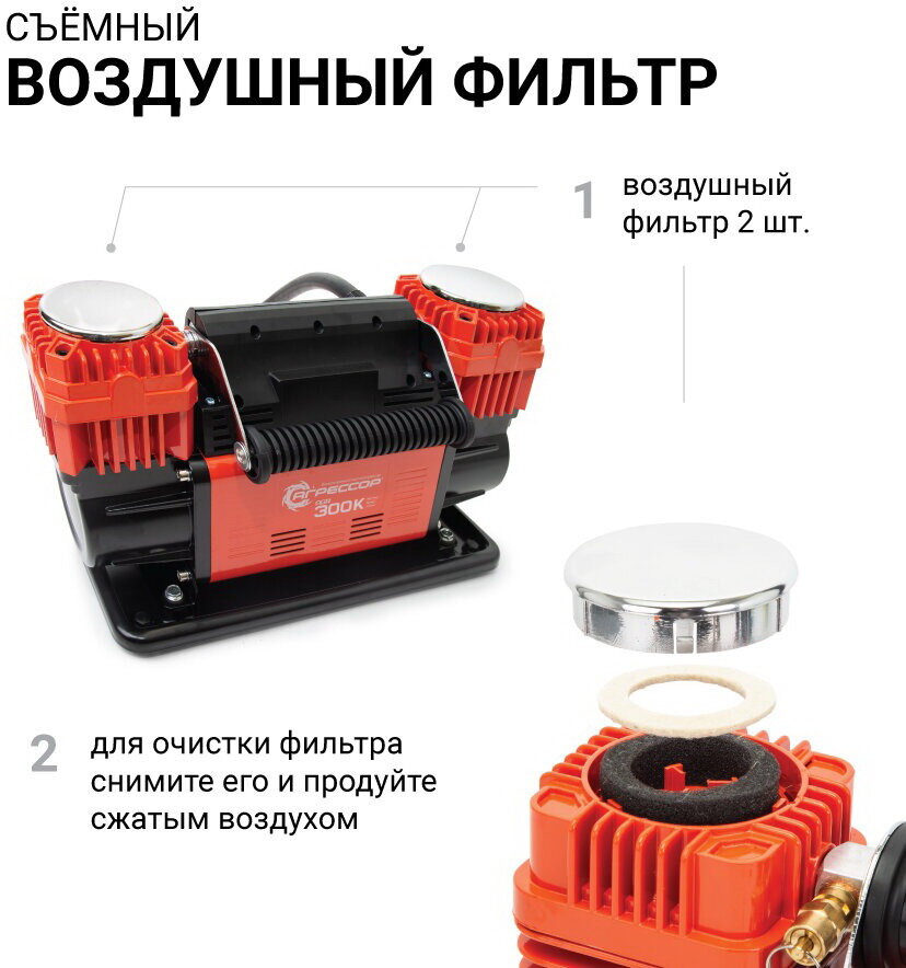 СохранитьАгрессор Компрессор воздушный , 300 л./мин., 12v/90a, шланг 8 м., шнур питания 2.4 м., питание от акб AGR-300K интересное: