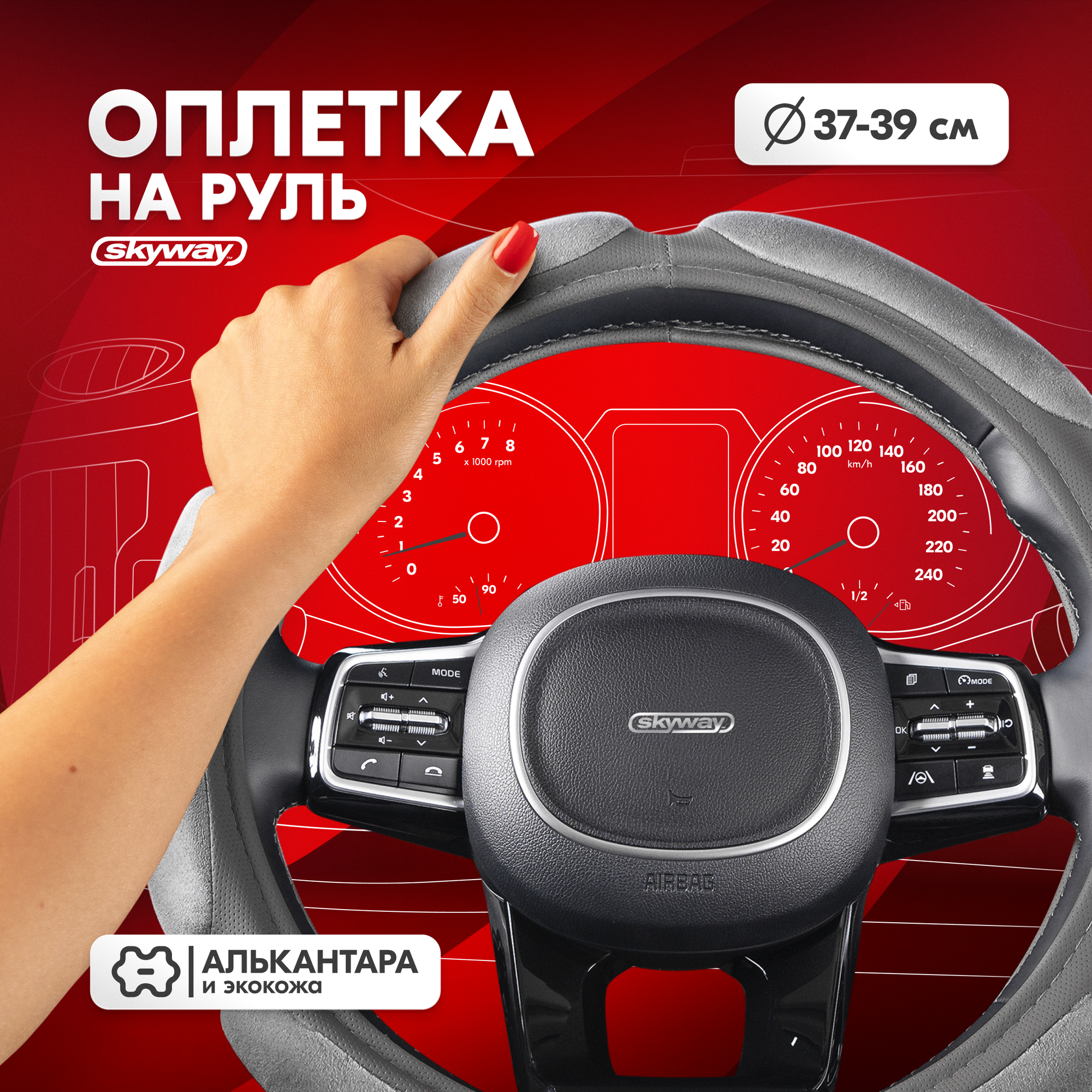 Оплетка на руль Top-12 SKYWAY M (37-39) серый экокожа, S01102501