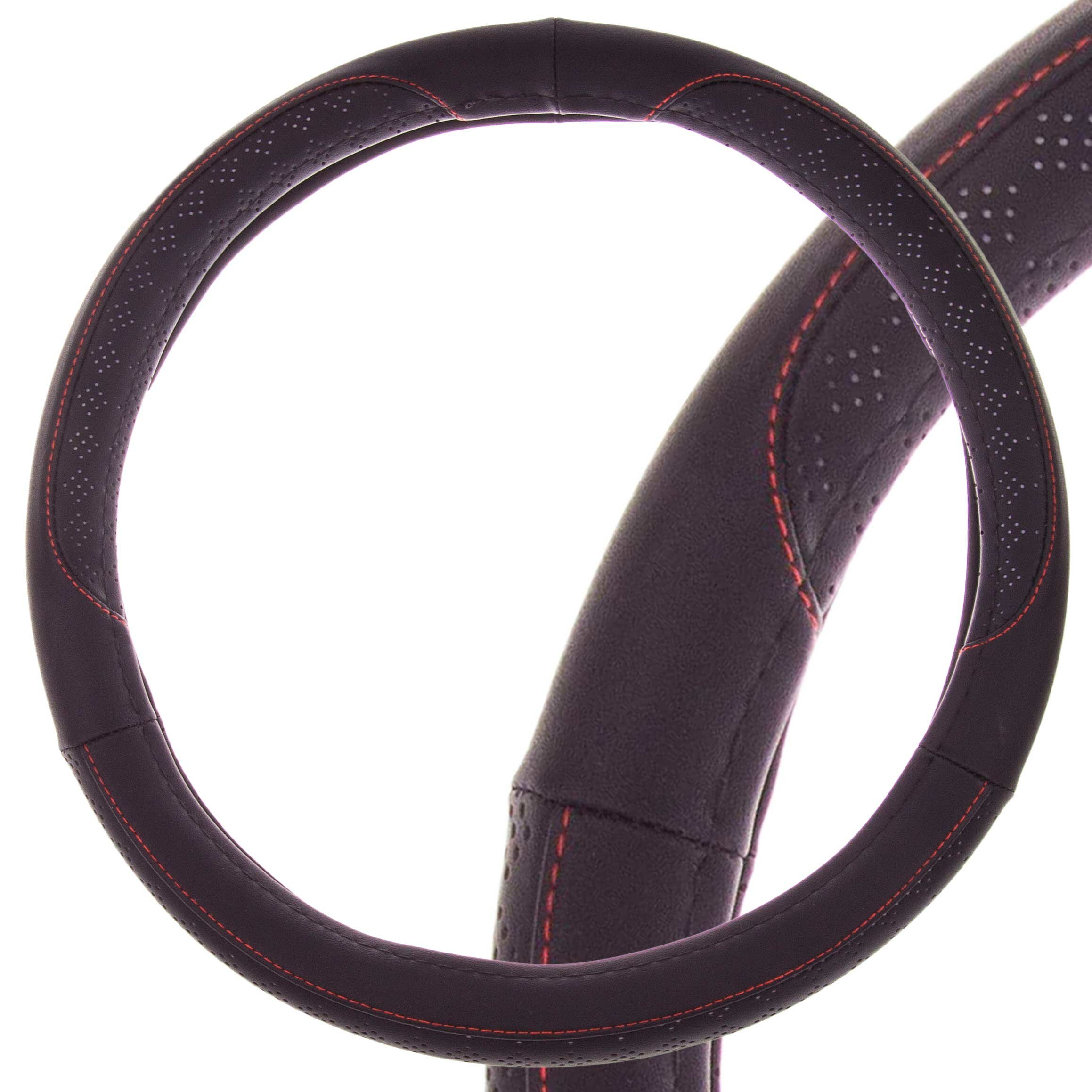Оплетка CAMC AH3251-2 / Чехол на руль экокожа черный / бордовый (каркасный) 44-45 см