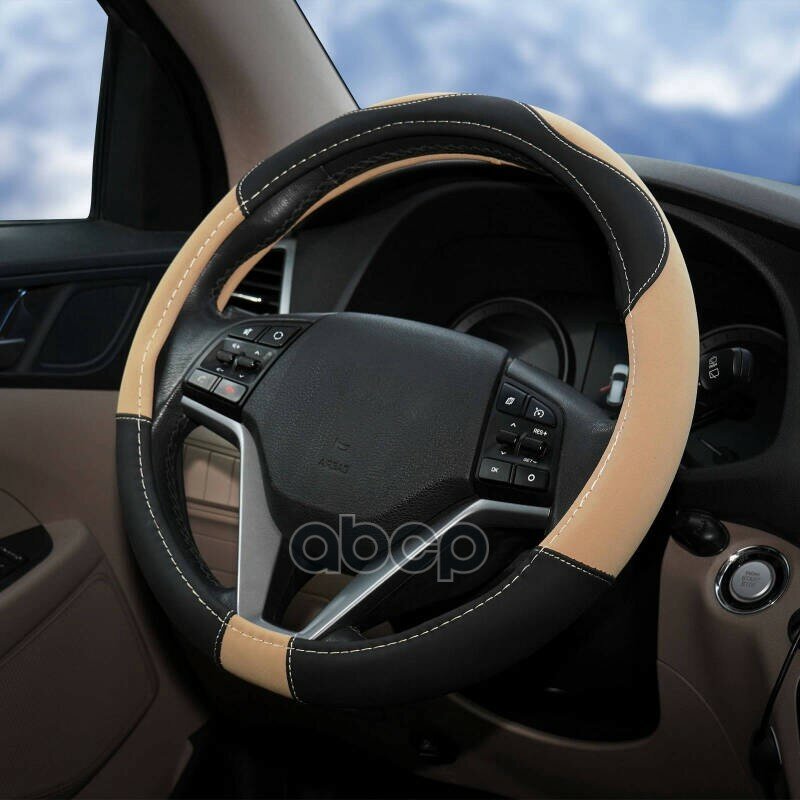 Оплетка на руль, искусственная замша/кожа, песочная/черная, 38 см / M AIRLINE