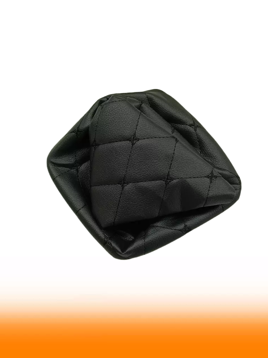 Чехол коробки переключения передач (КПП) на ВАЗ-2170 Лада Приора - черный с черной двойной строчкой "ромб-бабочка"